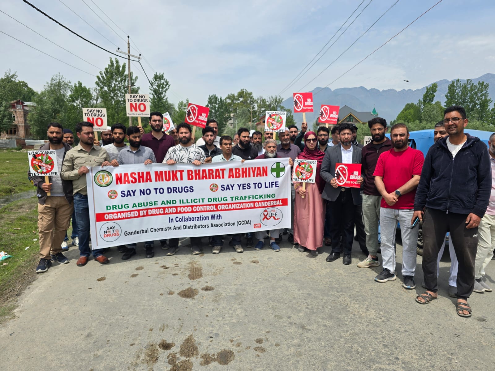 The event was organized by the Drug and Food Control Organization Ganderbal in collaboration with the Ganderbal Chemists and Distributors Association (GCDA).Participants assembled in significant numbers, holding placards and banners with messages such as “Say No to Drugs” and “Say Yes to Life,” emphasizing the urgent need to combat the growing menace of substance abuse in society. The rally moved through key areas, attracting public attention and encouraging community participation.