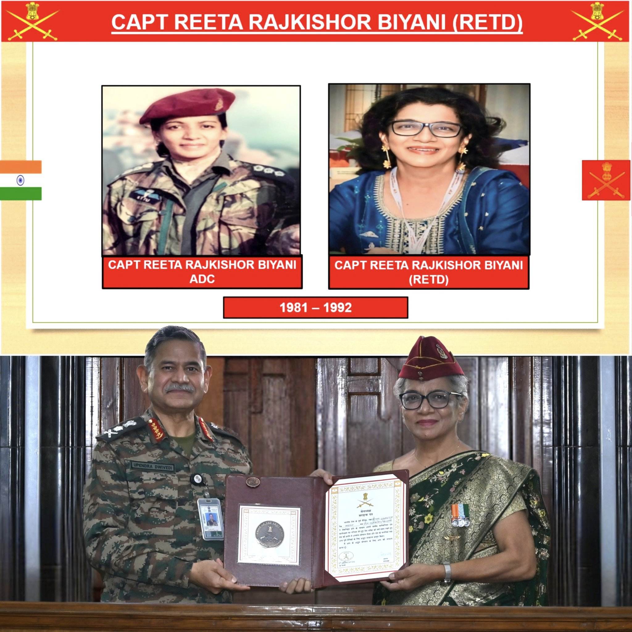 The ceremony also celebrated the grassroots impact of Subedar (Honorary Captain) Tsewang Norbo (Retd) and Subedar Bhaskar Parida (Retd). Captain Norbo has been a driving force for socio-economic upliftment in remote regions, leading environmental plantation drives and mentoring local youth to join the Armed Forces.
