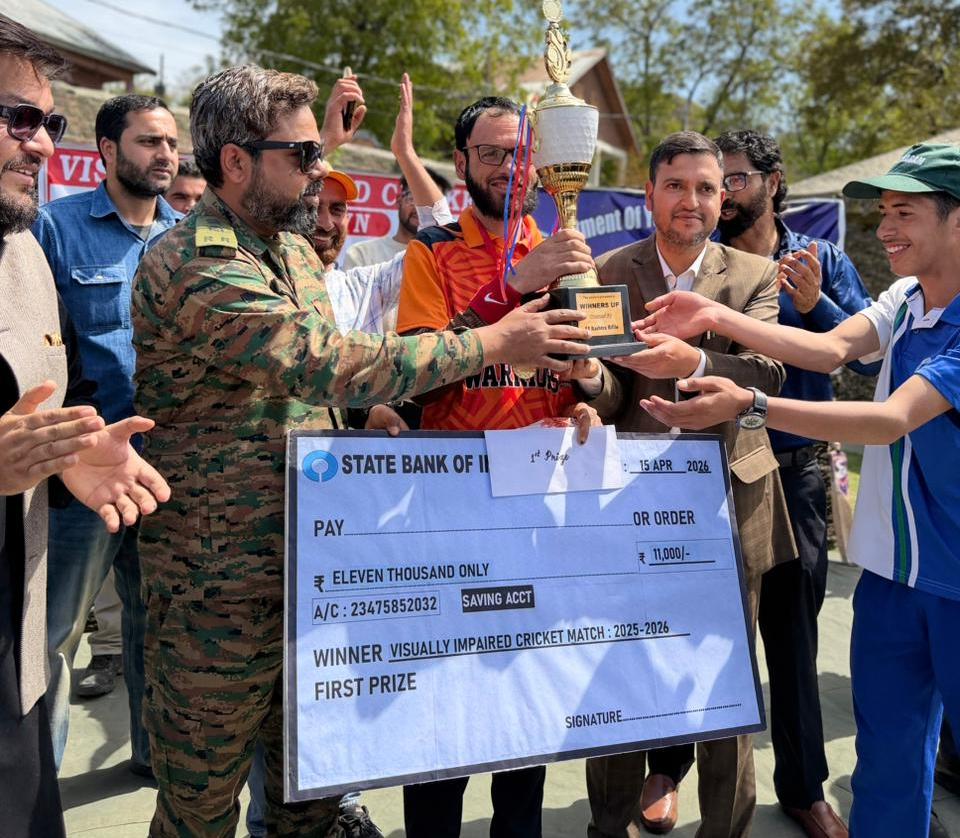 Srinagar April 15,2026 :- 53 Rashtriya Rifles Battalion organised a cricket match for Visually Impaired Youth of AOR at Govt Boys Higher Secondary School Nagam, aimed at inclusion of visually impaired youth in the mainstream of society, providing them platform to develop confidence and sportsmanship and strengthening civil-military cooperation.