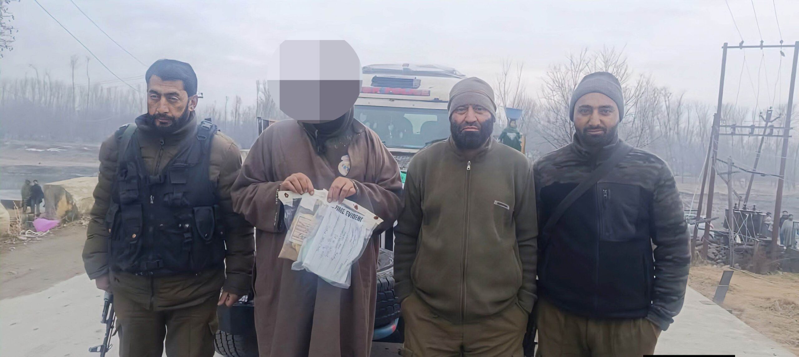 A vigilant police team from the Toll Plaza Post intercepted a suspicious individual, identified as Ghulam Mohi-ud-Din Shaksaz, a resident of Malpora Ghat Tokuna, during a routine “naka” (checkpoint) search.