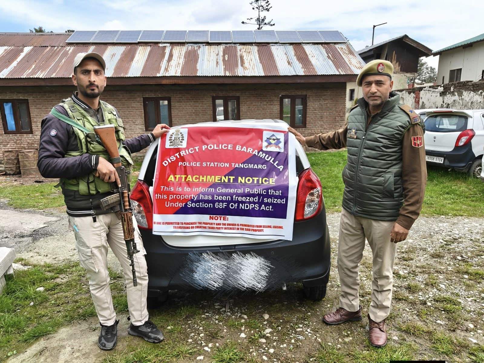 BARAMULLA, APRIL 02: As part of a relentless campaign to dismantle the economic foundations of drug syndicates, the Baramulla Police have officially attached a Maruti Alto-800 car (registration number JK05K-7701) linked to a notorious narcotics trafficking network.