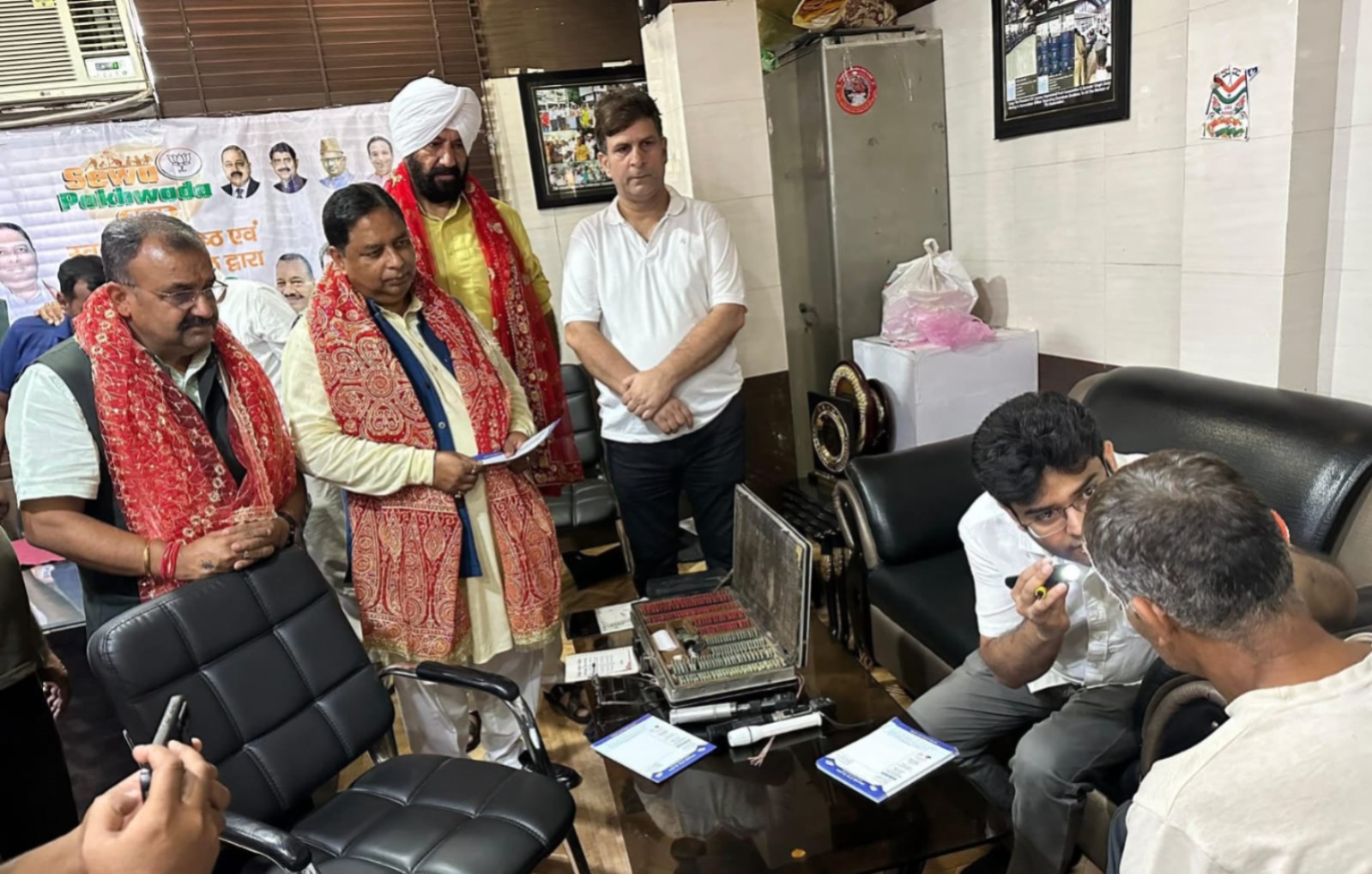 A dedicated team of doctors led by Dr. Pranay Mahajan from Chand Eye Clinic, Gandhi Nagar, extended their professional services to hundreds of patients. Beneficiaries underwent free eye checkups, diagnosis, and treatment, while free medicines were distributed to those in need.