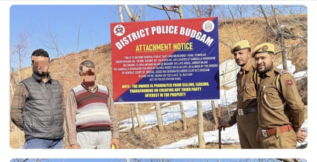BUDGAM, Feb 21: In a decisive blow to the financial and logistical infrastructure of terror networks, the Budgam Police today attached the immovable property of a Jammu and Kashmir National Outfits (JKNOP) operative.