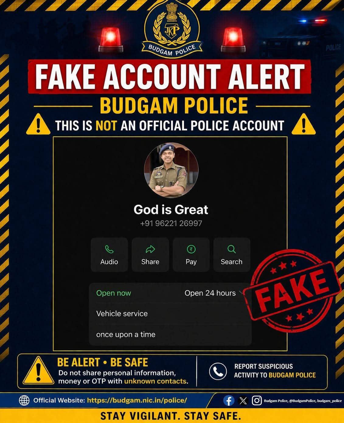 SRINAGAR, APRIL 14, 2026: Authorities in Budgam have initiated legal proceedings against a local man following reports that he was operating a fraudulent WhatsApp account of the Senior Superintendent of Police.