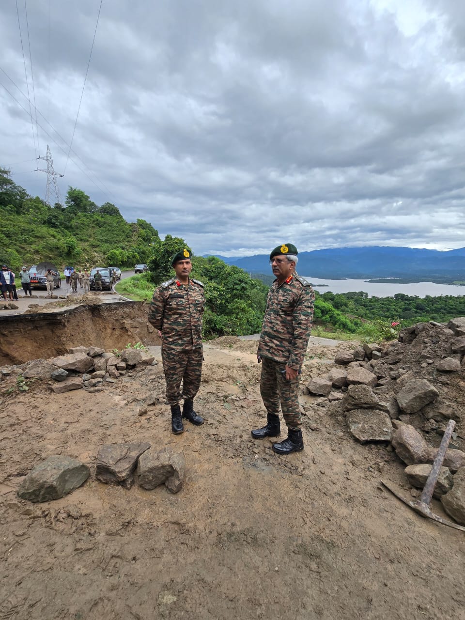 Jammu: 04 September :- Lt Gen Raghu Srinivasan, PVSM, VSM, DGBR inspected the roads affected by the recent unprecedented rains in the UT of J&K. He visited the two strategically important roads of Ramkot-Ranjit Sagar Dam and Basholi-Bani Road.