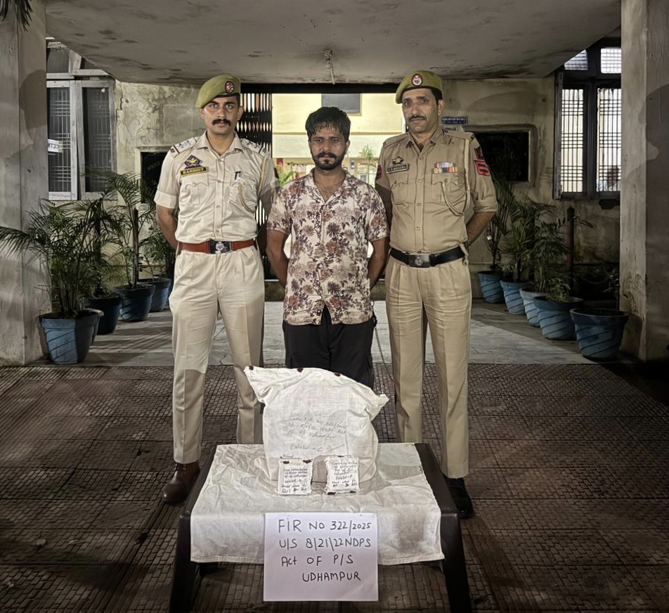 On checking, one person identified as Rahul Sharma S/o Mohan Lal R/o Jagwal Majalta A/P Satani Round Domail, Udhampur was found carrying 20 strips (10 tablets each) of Tramadol & 100 strips (10 tablets each) of Pregabalin who has been arrested on spot and the contraband was also seized.In this regard, a case FIR No. 322/2025 U/S 8/21/22 NDPS Act stands registered at Police Station Udhampur and investigation has been set into motion.
