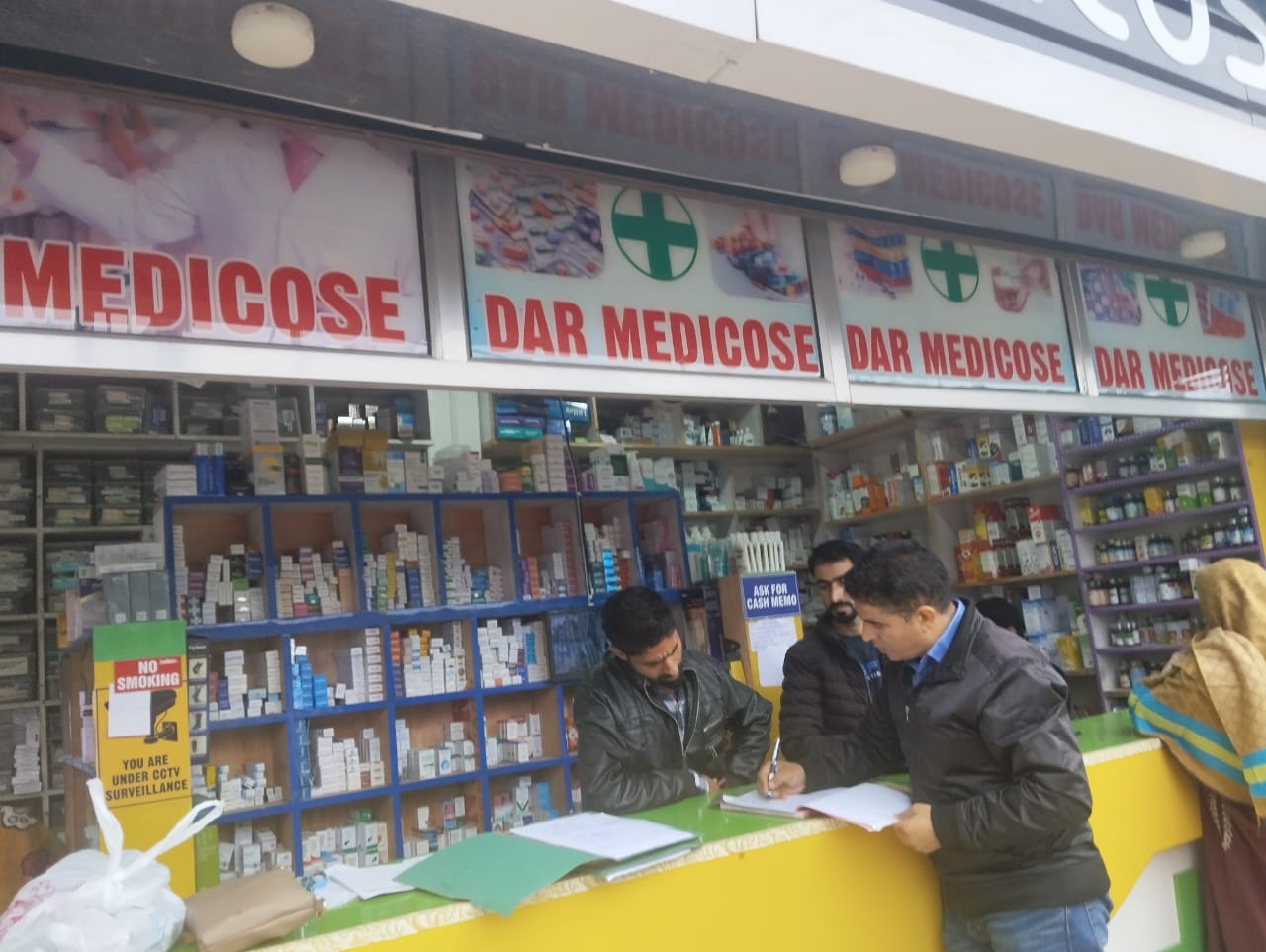 Ganderbal 06 October :- The Drugs Control Department Ganderbal has intensified inspections of medical shops to ensure strict implementation of the revised GST slab and to direct chemists to pass on the benefit of the same to the common people.The intensified drive was also carried out in compliance with the directions of the Secretary, Health & Medical Education Department, J&K, and the Commissioner, Food and Drugs Administration, J&K, regarding raising awareness among chemists about the prohibition on dispensing cough and cold syrups to children aged between 2 and 5 years.