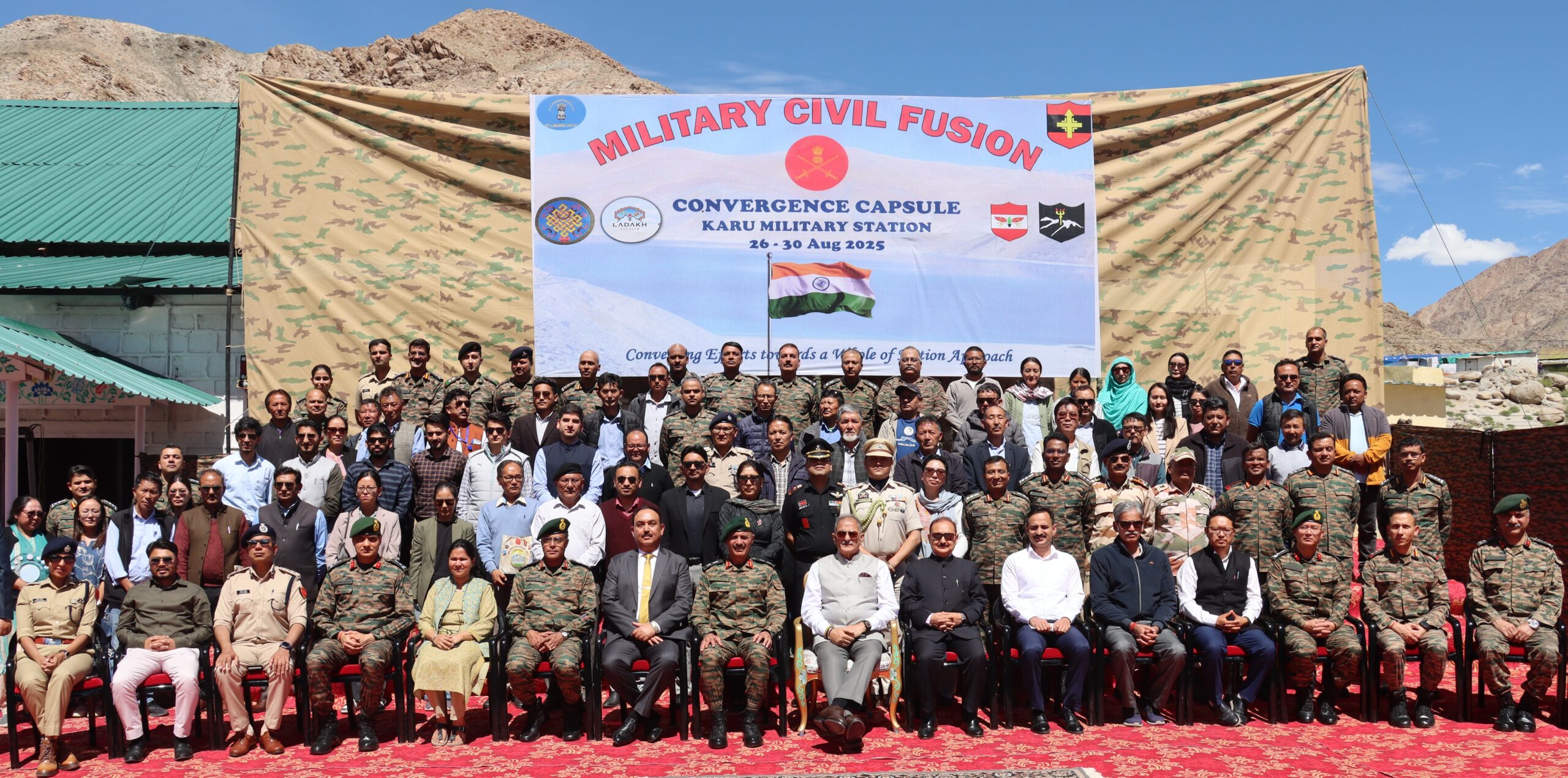 Leh 30 August :- The Five Days Military-Civil Fusion Capsule 2025, organised under the aegis of Fire and Fury Corps concluded today at Karu Military Station, marking a pivotal milestone in strengthening collaboration across diverse sectors, including Education, Health, Revenue, Police, Rural Development, Tourism, Public Administration and Army. The five-day summit, which began on August 26, 2025, brought together key stakeholders to advance the vision of Atmanirbhar Bharat through a unified military-civil synergy aimed at the comprehensive development of Ladakh with a Whole of Nation approach.