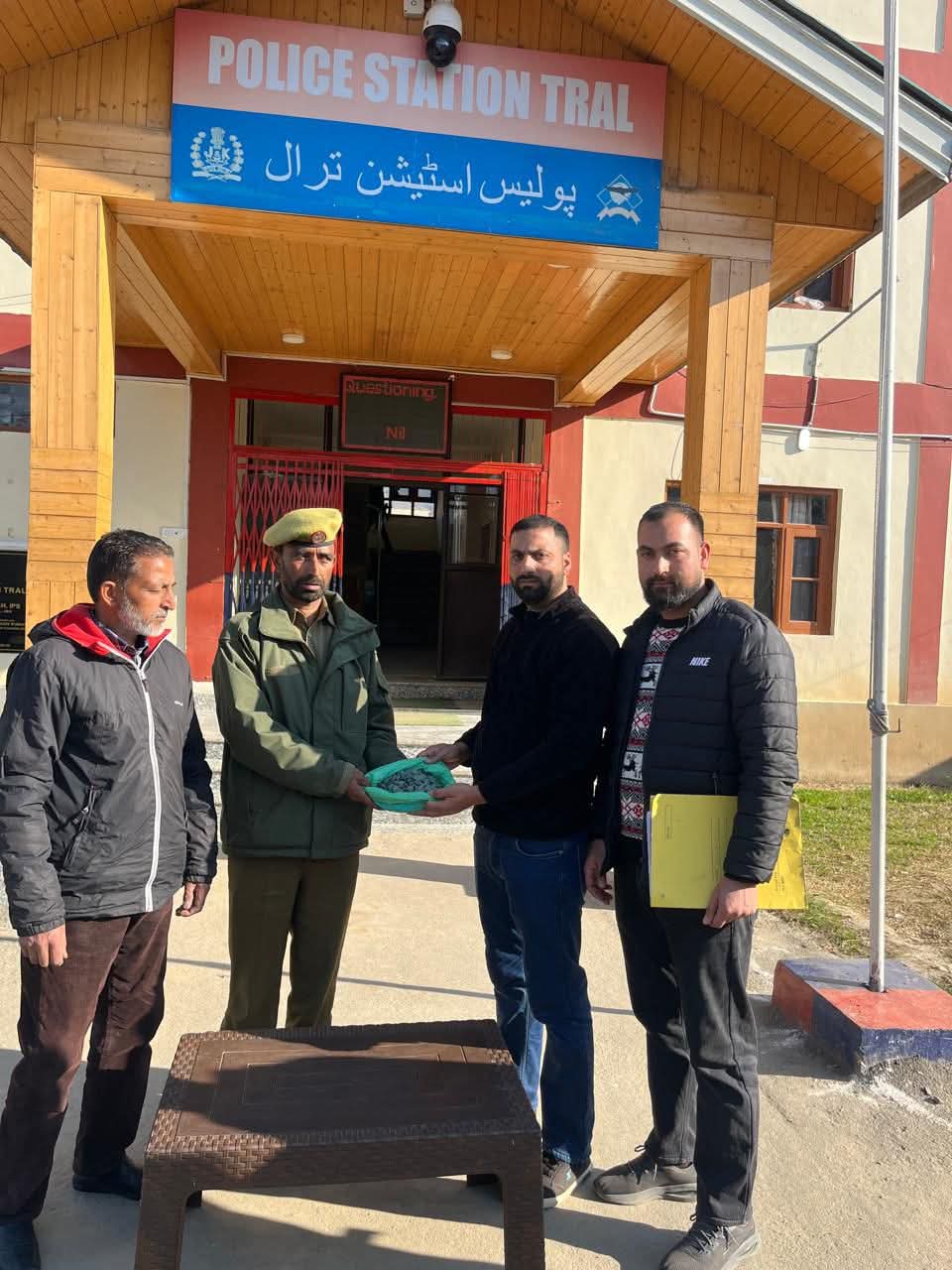 Upon recovery, the artifacts were placed in secure custody at the Tral Police Station under the direct supervision of SHO Inspector Tajamul Islam.