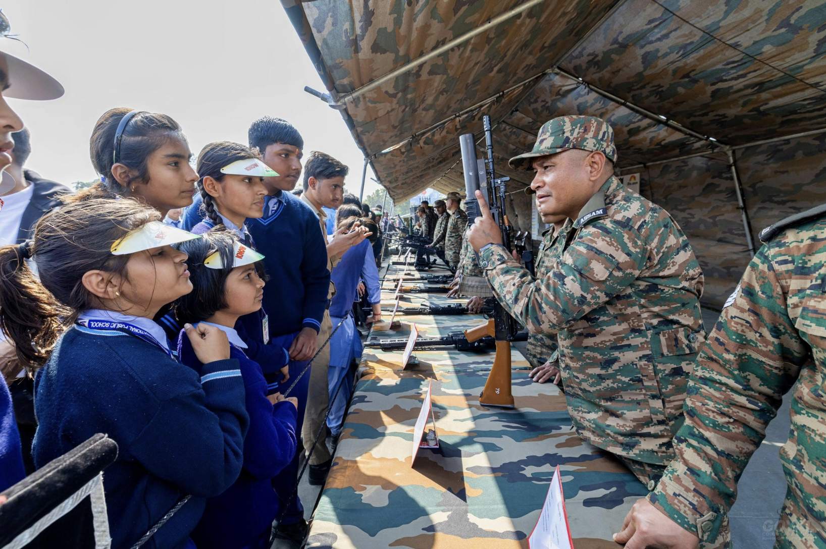 The General Officer Commanding (GOC) of the Pashchim UP Sub Area graced the occasion as the Chief Guest, taking time to interact warmly with the visiting children. In his address, he urged the students to strive for excellence and uphold the core military ideals of discipline, integrity, and dedication.