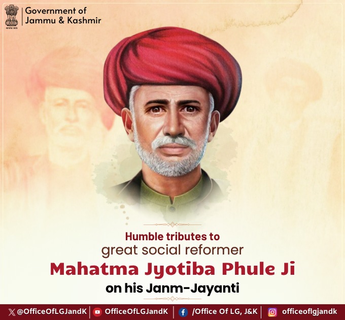 JAMMU, April 11, 2026 — Jammu and Kashmir Lieutenant Governor Manoj Sinha paid a heartfelt tribute to the legendary social reformer Mahatma Jyotiba Phule on the occasion of his birth anniversary, acknowledging his profound impact on the nation’s social and educational landscape. In a commemorative message, the Lieutenant Governor hailed Phule as a visionary educationist and a relentless advocate for human dignity, whose life’s work was dedicated to dismantling social hierarchies and championing the cause of equality.