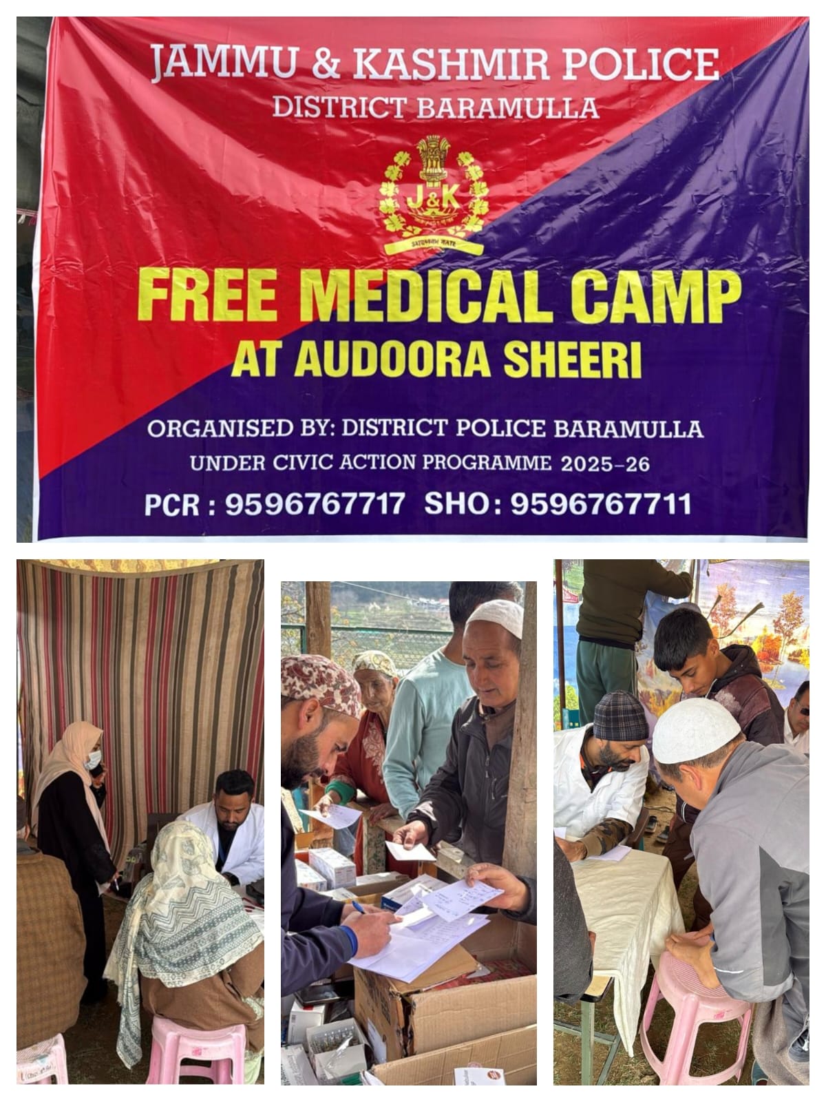 BARAMULLA, March 23, 2026 — As part of its ongoing commitment to community welfare and public health, the Jammu and Kashmir Police organized a comprehensive medical outreach camp today at Government Higher Secondary School Audoora, Sheeri.