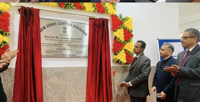 KATHUA, DECEMBER 20: Chief Justice of the High Court of Jammu & Kashmir and Ladakh, Justice Arun Palli, officially inaugurated the newly constructed Court Complex at Hiranagar today in a ceremony attended by prominent judicial and administrative figures.
