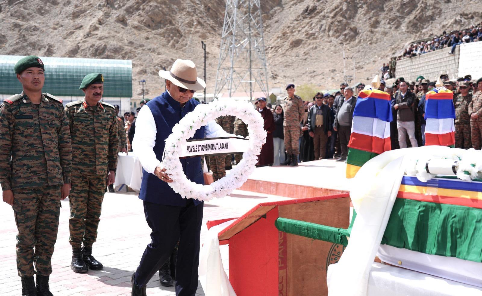 The Lieutenant Governor laid a wreath and offered solemn tributes to the decorated Kargil War veteran, acknowledging his extraordinary bravery and service to the nation.