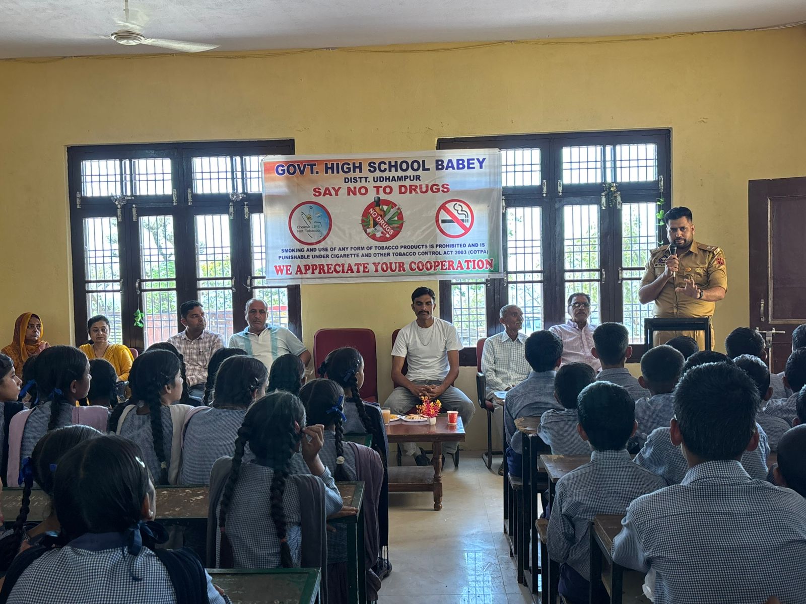 UDHAMPUR, April 16, 2026— As part of the ongoing “Nasha Mukt Jammu & Kashmir Abhiyaan”, the Udhampur Police organized a comprehensive drug awareness programme at Government High School (GHS) Bobey, located in the Majalta area.