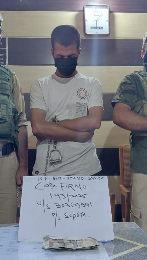 As per Reports after getting an complaint stating the Rupess 5000 had Stolen from the Complainant’s Pocket in main market Sopore police Party of Police post bus stand swang into Action and Registered a case FIR No. 193/2025 under Section 303(2) of the Bharatiya Nyaya Sanhita was registered at Police Station Sopore, and investigation was taken up.