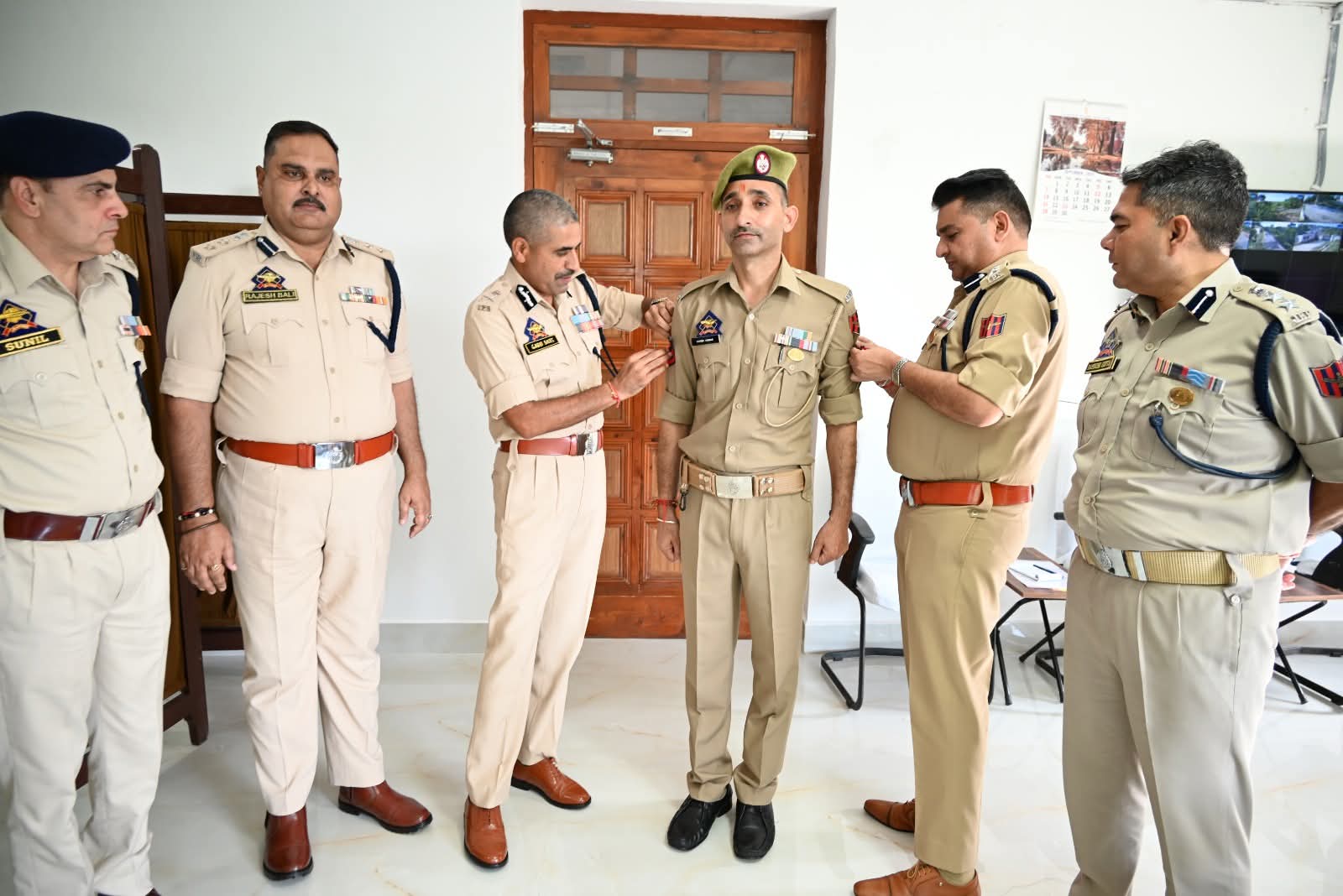 Udhampur 25th September: -Today a piping ceremony was held at the Sher-i-Kashmir Police Academy (SKPA Udhampur). During the event, Garib Dass, IPS, ADGP, Director SKPA Udhampur adorned the ranks of newly promoted officer/officials including ASI (M) Subash Chander, HC (M) Ashok Kumar, HC (M) Pardeep Kumar, HC (M) Surinder Mohan, HC (M) Jugal Kumar & HC (M) Suresh Singh.