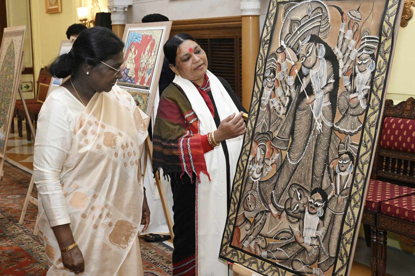 The President spent time witnessing a diverse array of artworks created by these artisans, who are currently residing at the presidential estate as part of the prestigious ‘Kala Utsav’ Artists-in-Residence Programme.