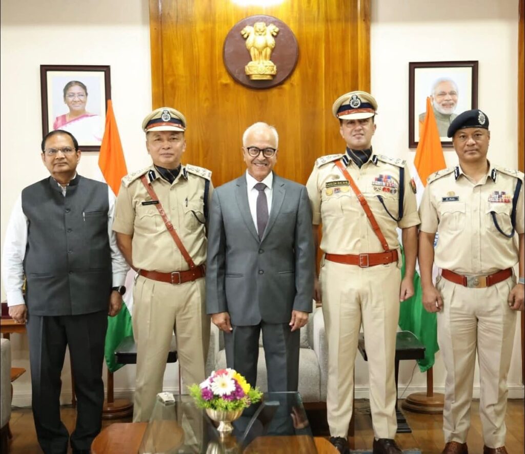 During the ceremony, Governor placed the new rank insignia on the officers, symbolising their formal elevation in service.Rakesh Balwal, IPS, and Ningshem Vashum, IPS, were recently promoted to the rank of Deputy Inspector General of Police (DIGP). Governor congratulated both officers and extended best wishes for their continued service to the State and the Nation.