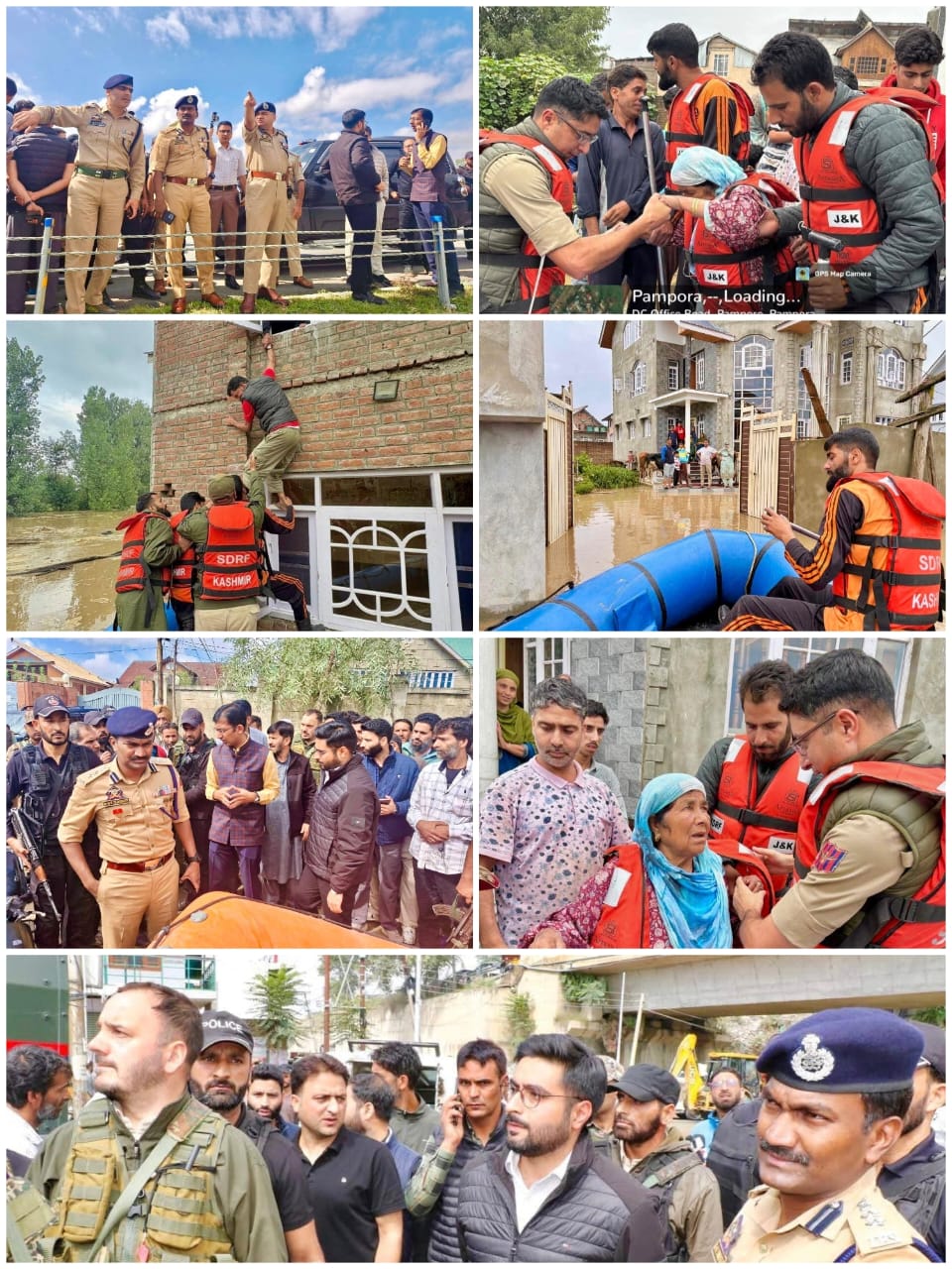 Srinagar, September 04 : In response to the ongoing flood-like situation and heavy waterlogging in various parts of the city, Srinagar Police, in close coordination with SDRF and River Police, has activated a comprehensive evacuation and relocation plan to safeguard the lives and well-being of affected citizens.