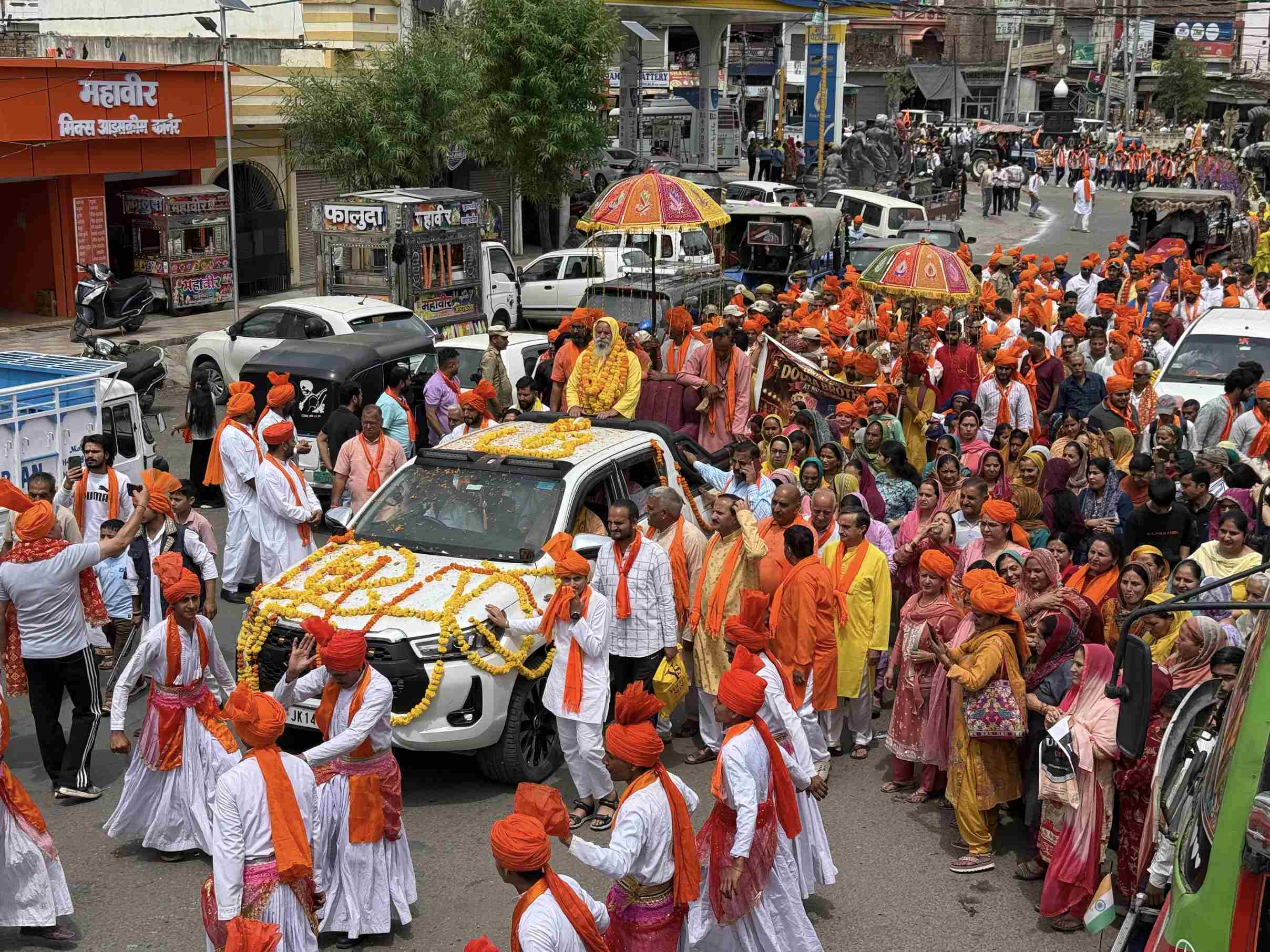 The Shobha Yatra commenced from the historic Sankat Mochan Kargil Hanuman Temple under the spiritual guidance of Sant Subhash Shastri.