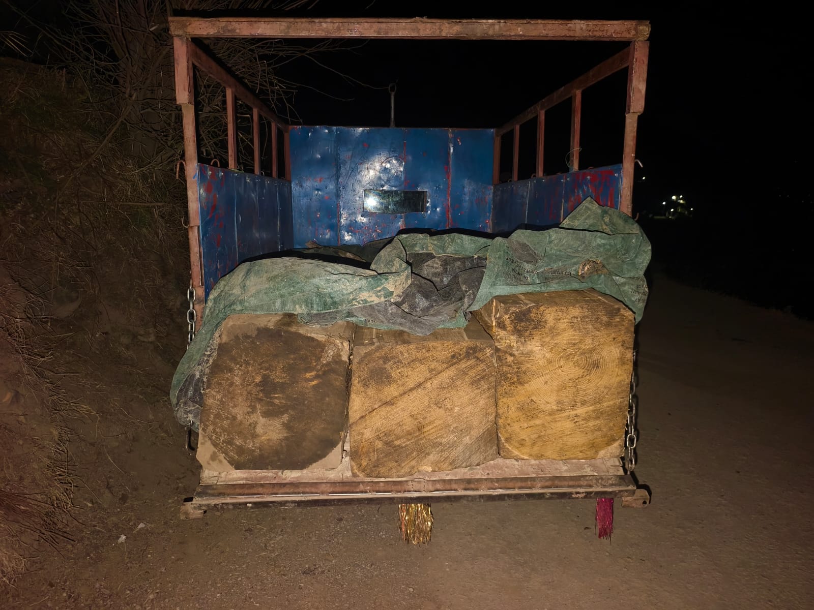 UDHAMPUR, Feb 18, 2026 — In a successful midnight crackdown on forest crime, a specialized team from the Udhampur Forest Division intercepted a major timber smuggling attempt in the Gali–Katwalt area near Gouri Kund. During the intervening night of February 17, a forest squad led by the Block Officer of Kud spotted a suspicious vehicle transporting illicit forest produce.