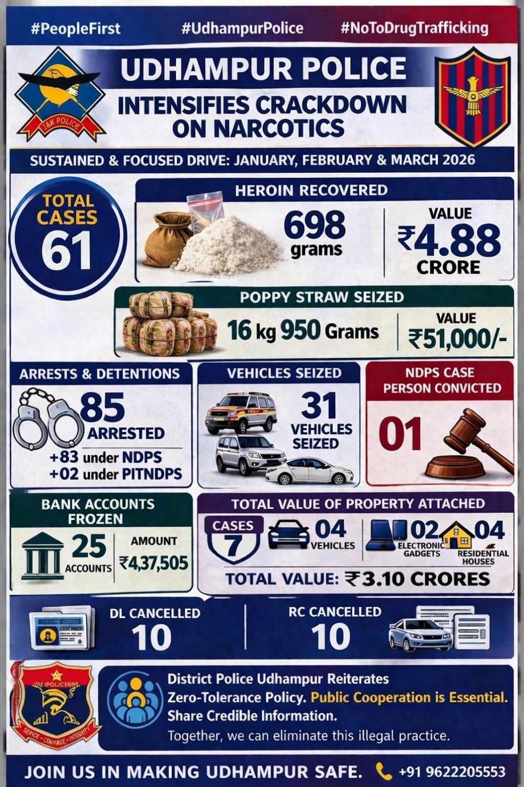 Senior officials stated that this strategy of hitting the financial foundations of the drug trade, combined with a zero-tolerance field approach, remains the cornerstone of their mission to make Udhampur a drug-free district.