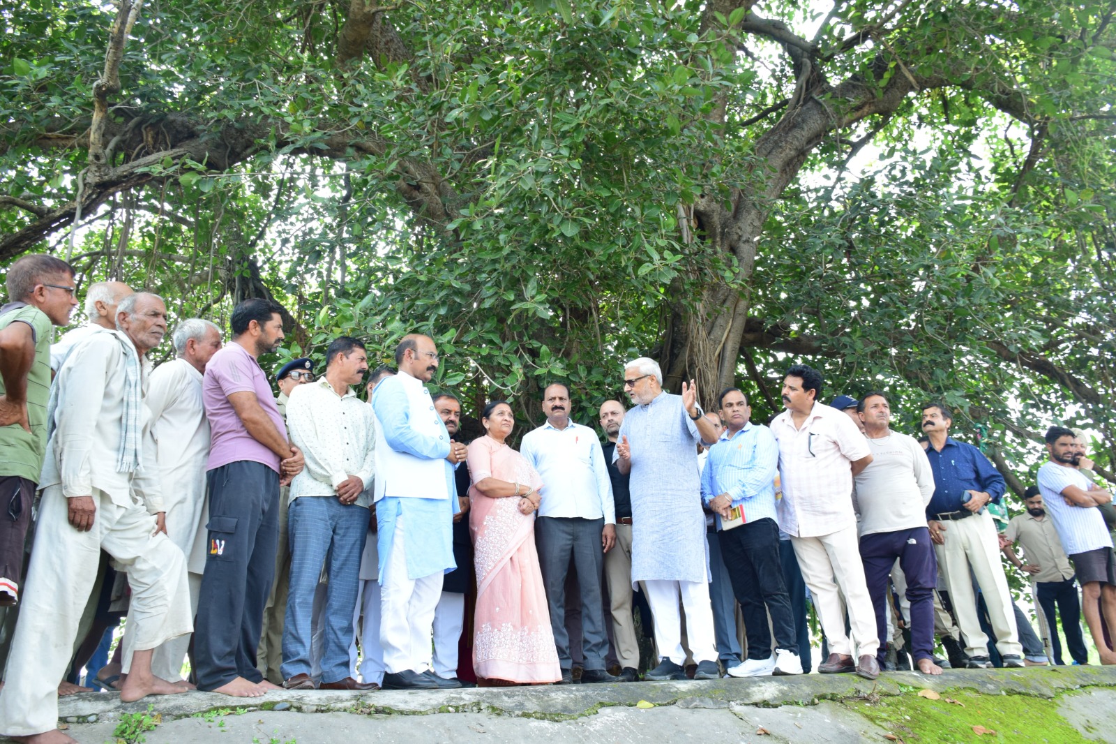 Jammu, 13 SEPTEMBER :- Union Minister of State for Consumer Affairs, Food & Public Distribution, Nimuben Jayantibhai Bambhaniya, today visited various flood-affected areas of Jammu district to take a first-hand account of the damages caused by recent floods.The Minister was accompanied by legislators Sham Lal Sharma, Vikram Randhawa and Mohan Lal Bhagat, besides Vice Chairman District Development Council Jammu, Suraj Singh.